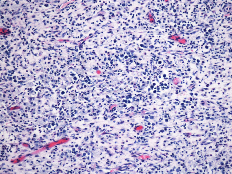 最终诊断为:ALK阳性的间变性大细胞淋巴瘤,淋巴组织细胞变异型。