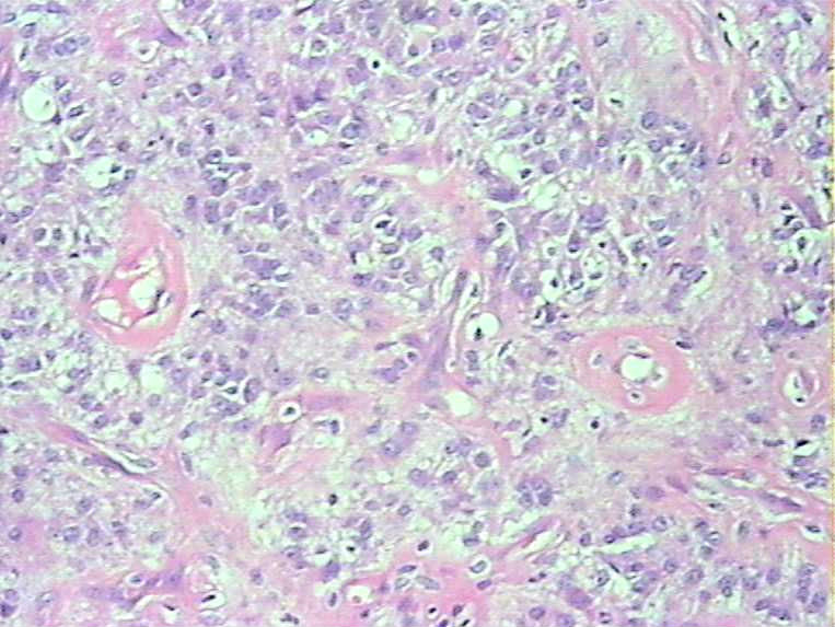 楼主快点更新相关资料啊,仅凭HE形态还有点像软组织透明细胞肉瘤,可是病理诊断不是孤立性的形态学诊断,要综合尽量多的资料信息才能准确诊断,单纯地凭形态学诊断很容易出错,因为不同病变有相似形态学特征