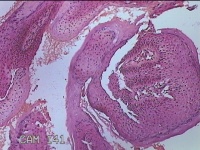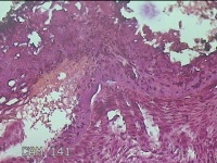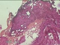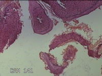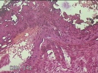 灰白暗红色不规则碎组织0.3x0.2x0.1cm一堆。