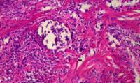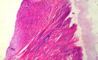 3.8X4.5X1cm,有包膜,切面黄白色,质硬。