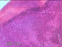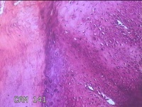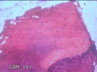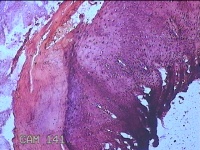 灰白粉红色结节0.3x0.2x0.1cm一个,表面糜烂。