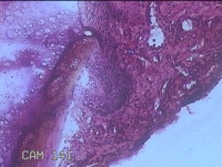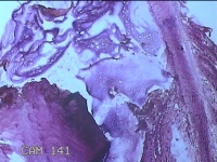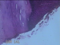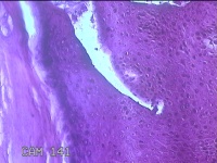 灰白粉红色结节0.3x0.2x0.1cm一个,表面糜烂。