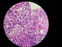 男,78岁。前列腺增生电切见后尿道腐肉样组织一块,直径0.7CM。