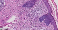 纤维组织瘤样增生,伴慢性炎细胞浸润。