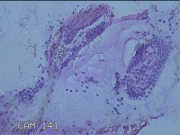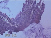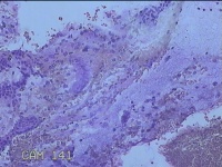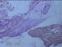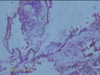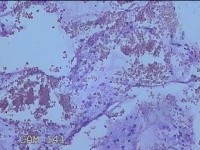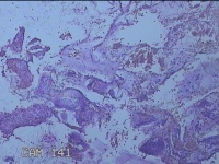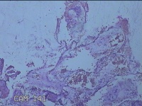 纱布一块,内有灰白暗红色不规则碎组织2.3x1.8x0.3cm一堆。