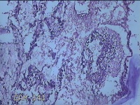 ;纱布一块,内有灰白暗红色不规则碎组织3.5x2.8x1.3cm一堆。
