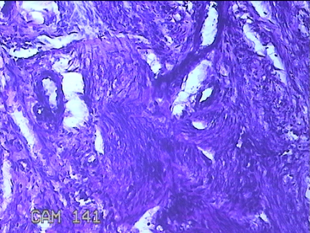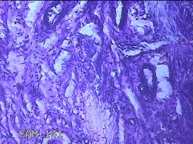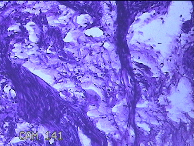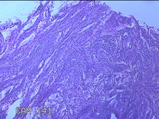 灰白粉红色不规则组织3x2.8x0.8cm一块。