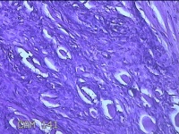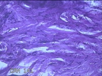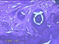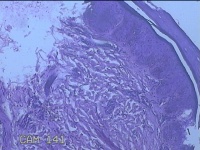 灰白粉红色带皮肤样组织0.8x0.7x0.3cm一块,表面带梭形皮肤0.8x0.7cm,皮下见结节0.8x0.5x0.3cm一个,切开结节呈实性,切面灰白粉红色,质软。