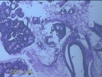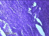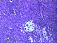 灰白粉红色肿物0.8x0.7x0.2cm一个,表面光滑。