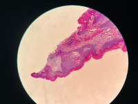 灰白灰红组织一个,大小约0.3✖️0.3✖️0.2cm