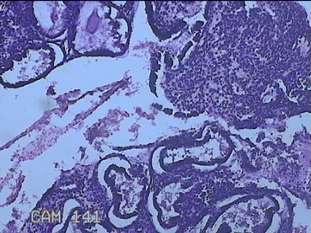 灰白暗红色不规则碎组织3.5x2.5x0.8cm一堆。