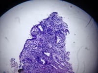 送检粘膜组织呈慢性活动性炎,伴糜烂。