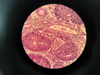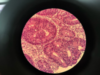 高级别上皮内瘤变。检材表浅,请结合肠镜