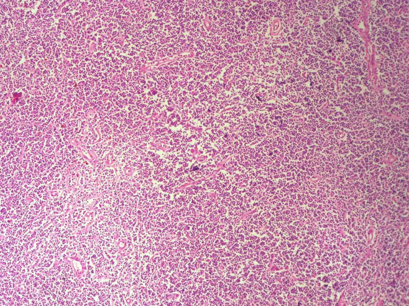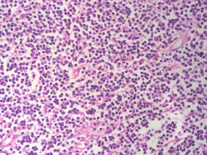 2. SLL小细胞淋巴瘤:就细胞形态而言,有相似之处,考虑SLL也有道理;但如果在没有发现淋巴结,肝,脾,骨髓或外周血具有病变的前题下,原发于结膜的SLL可能是少见的。