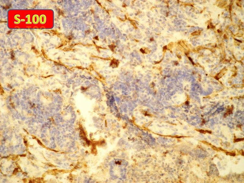 免疫组化S-100的阳性区域方式...嗅母可能性大。