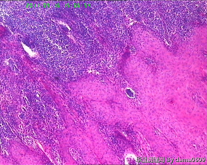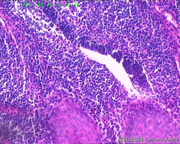 结合病史及镜下表现,如淋巴细胞浸润以皮下浅层为重、向下渐轻等,是否可符合书上的一个诊断:皮肤假性淋巴瘤(皮肤B细胞假性淋巴瘤)?学生自己没见过,还请老师多指教!!!谢!!