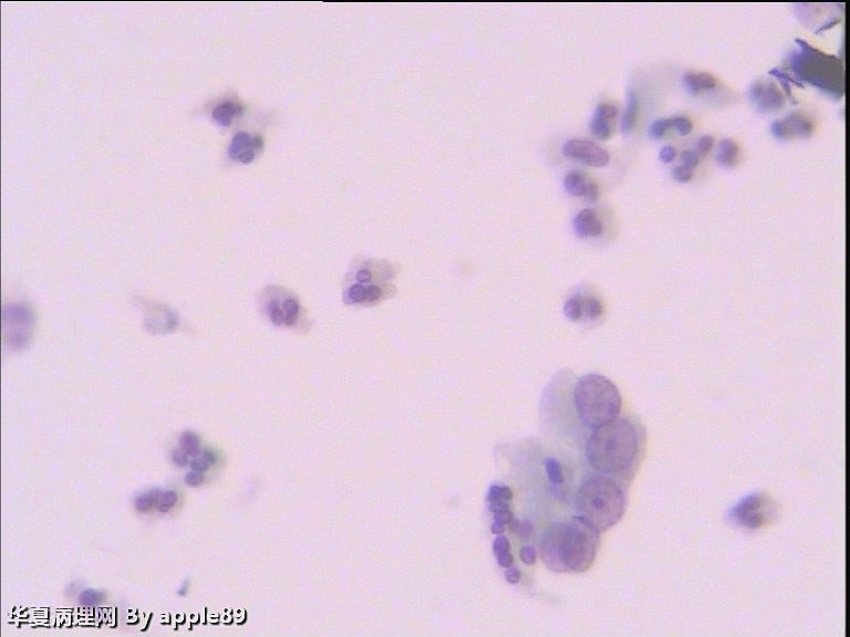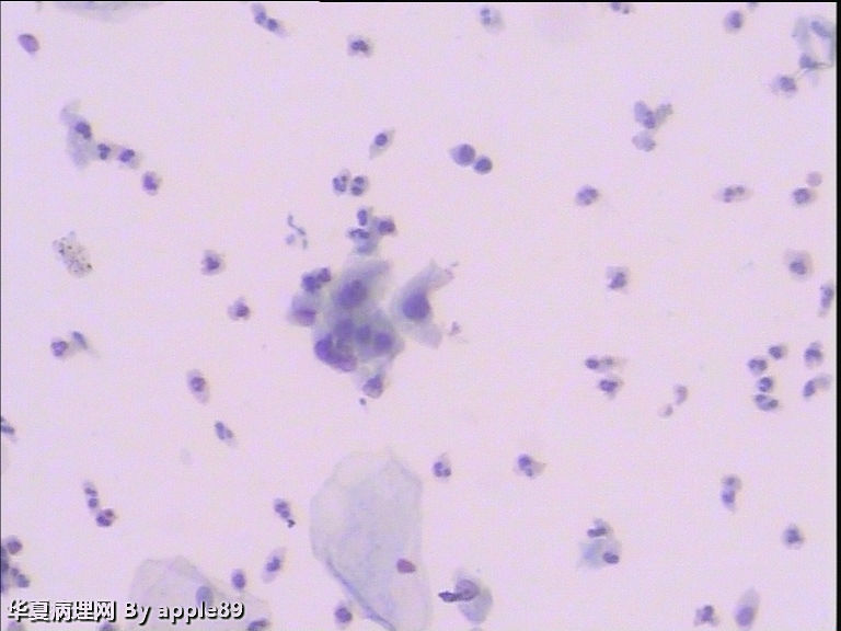 临床病史提供内膜厚度8毫米,不过不知道月经史。如果是在增殖期,有较大意义,要考虑内膜增厚。但是细胞形态学表现,这些成团的细胞不是内膜来源。图4可见泡沫状胞浆,蜂窝状排列的颈管细胞特点。