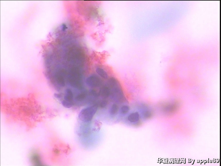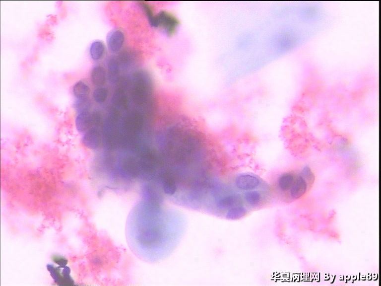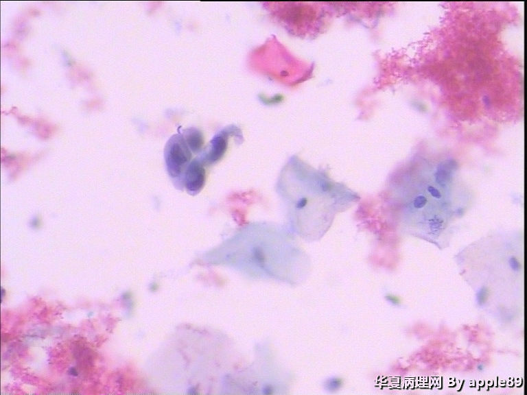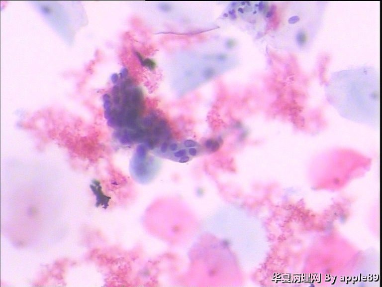 女,39岁,8月下旬做了leep刀,切了宫颈3/6/9/12点,病检12点病变最重,为CIN2-3级。现10月初,做了TCT复查。整张片子为血性背景……                                         3097