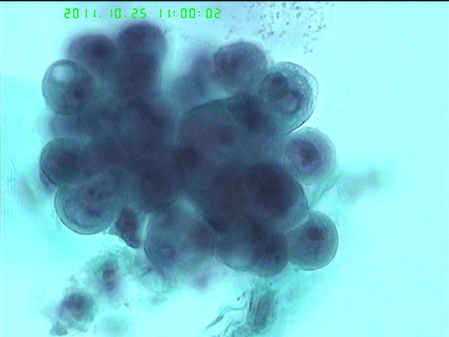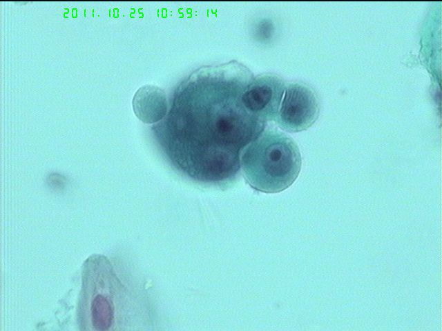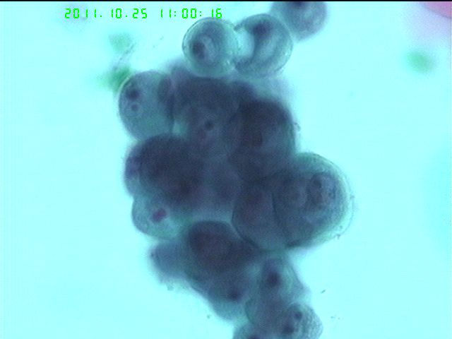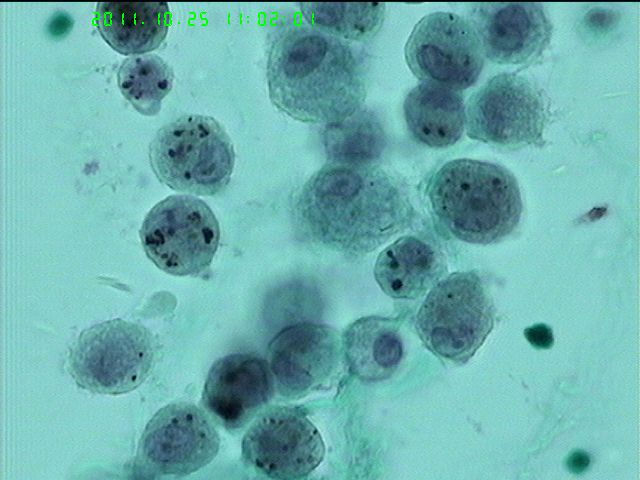 第一张图为组织细胞,在痰液基制片中,吞噬了尘埃的组织细胞非常典型,见到这种细胞,说明痰标本的取材是满意的。