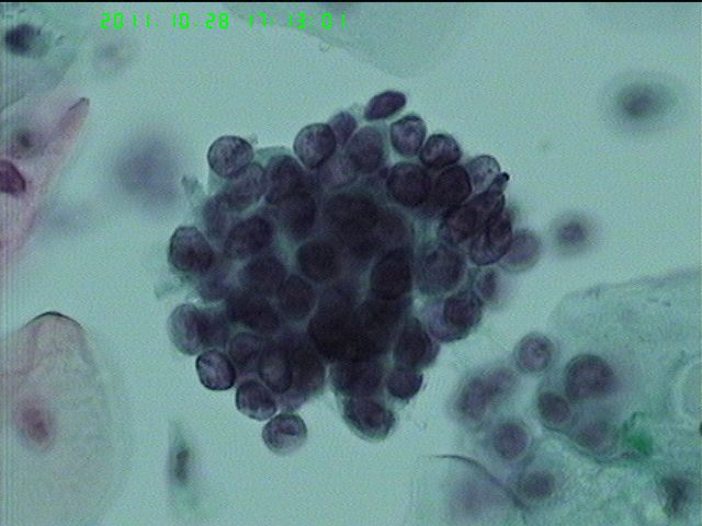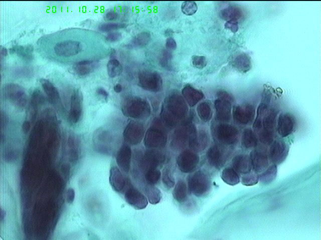 典型的HSIL,但坏死背景明显,可考虑SCC.