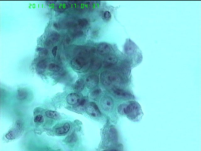 图3、5、11其实已经很典型了,粗糙的核,扭曲的核膜,小的核仁,多彩和红染的胞浆,以及细胞的片状、散在结构。
