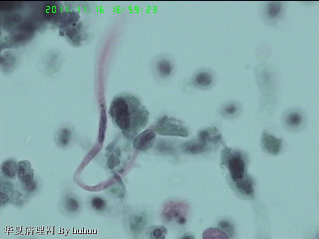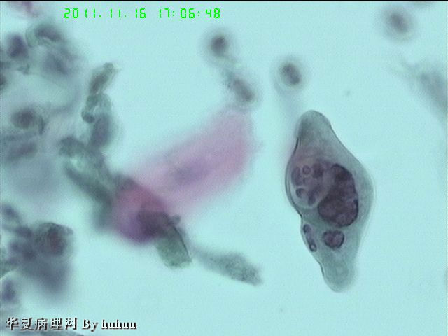 这个病例很典型,特别是标本来源为支刷,没有上呼吸道中的大量鳞状上皮干扰,这些角化的,梭形的,怪异的肿瘤细胞可以肯定为鳞癌来源。