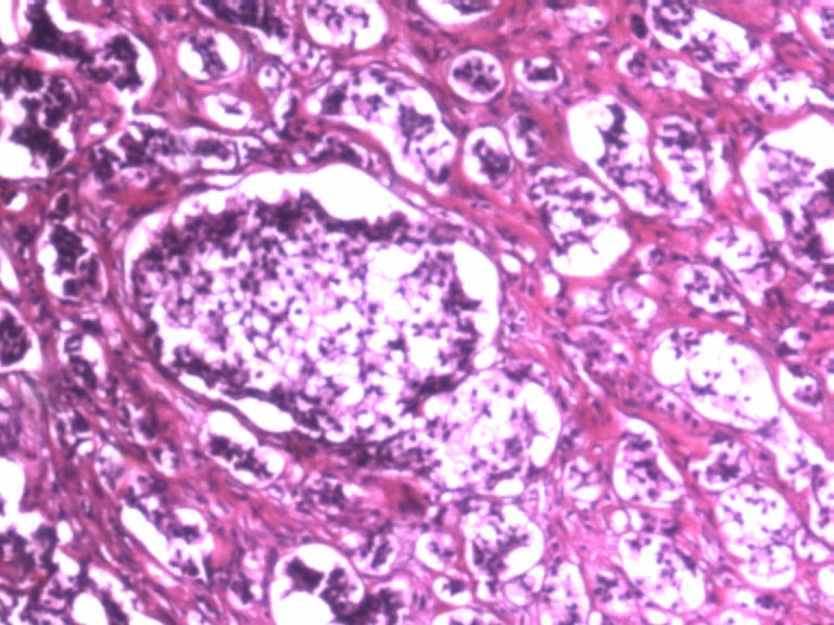 像类癌,有些粘液,标记一下Syn、CgA,有可能是杯状细胞类癌