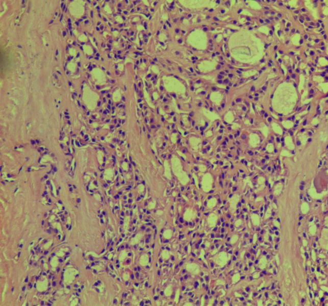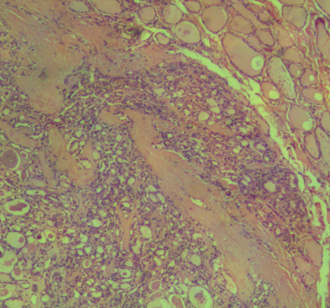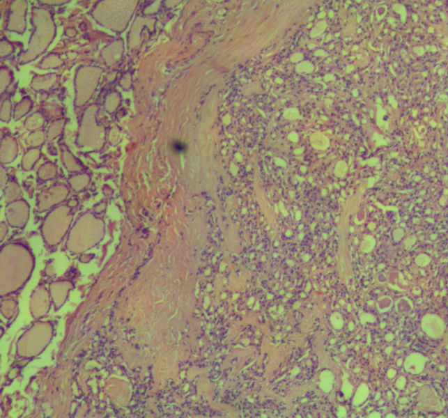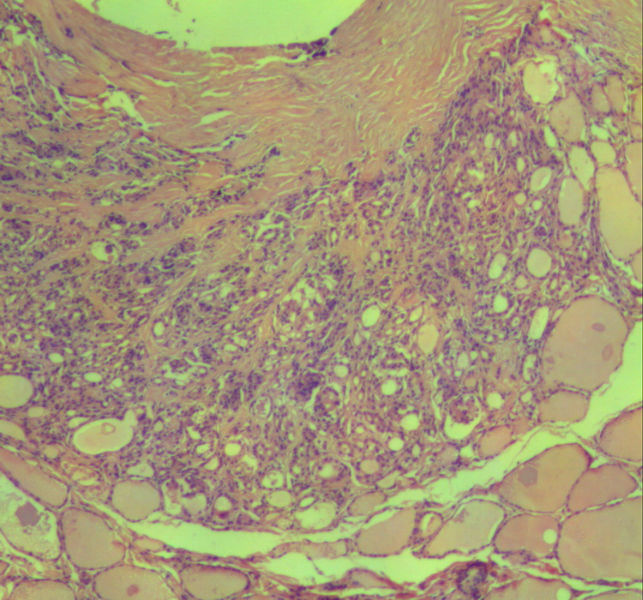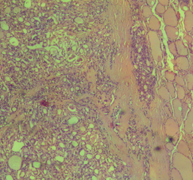 本例包膜不完整,应该是滤泡癌。