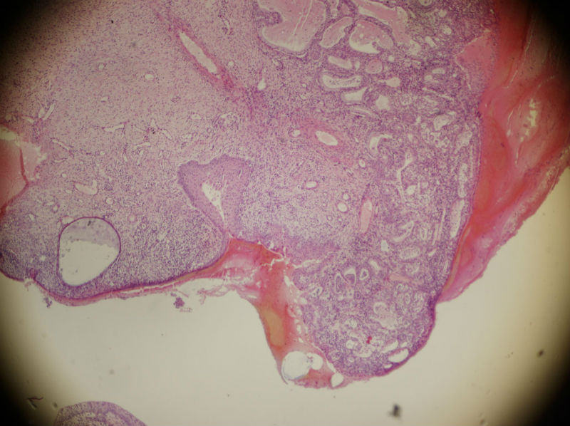 宫颈及宫颈内膜息肉,腺体增生及鳞化