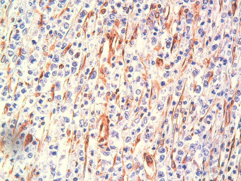 今天又做了免疫组化,请大家帮看看。CD10(-),CD138(-),CDX2(-),CD3(-),CyclinD1(-),CD2(-),CD117(-),CD7(-),CD30(-),CD23(-);CD20强(+),BCL-2,Bcl-6,EMA,PAX-5,MUM-1,CD5,ALK,CD68都是散在阳性,大家帮确定一下是否阳性。B细胞淋巴瘤可以确定了,不知是哪种类型的?