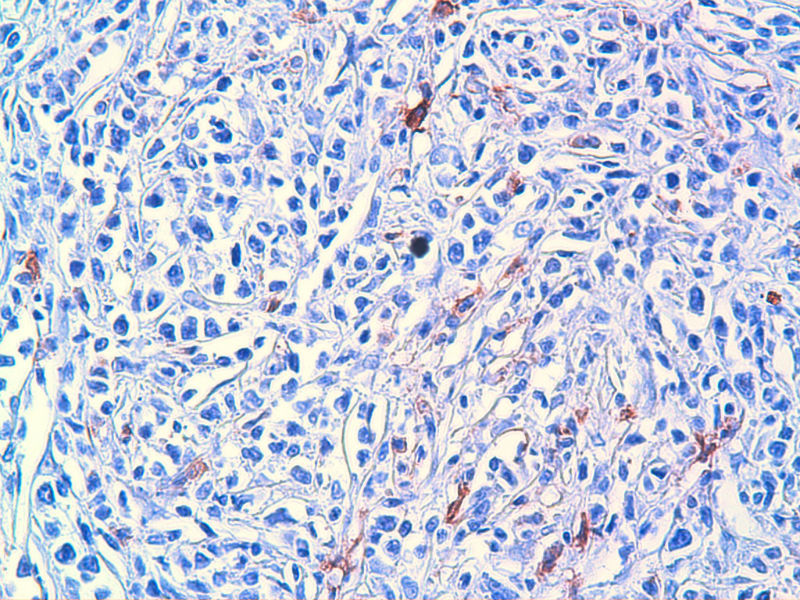 个人觉得低分化的鳞癌和低分化的腺癌有时在HE下是分不清的,看您做了ck8感觉可能是想排除腺癌,但是贲门部鳞癌比较常见,会不会来源于此处的低分化鳞癌,感觉如果用ck可以先定一个是否是上皮来源的方向,在进一步探讨具体是那种上皮貌似也好!