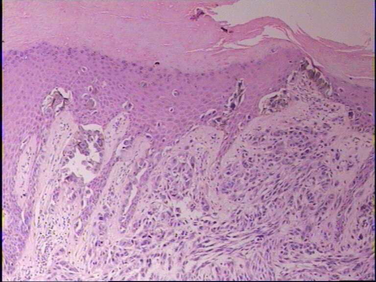 1、4图似乎有黑色素细胞对表皮的浸润,支持恶黑