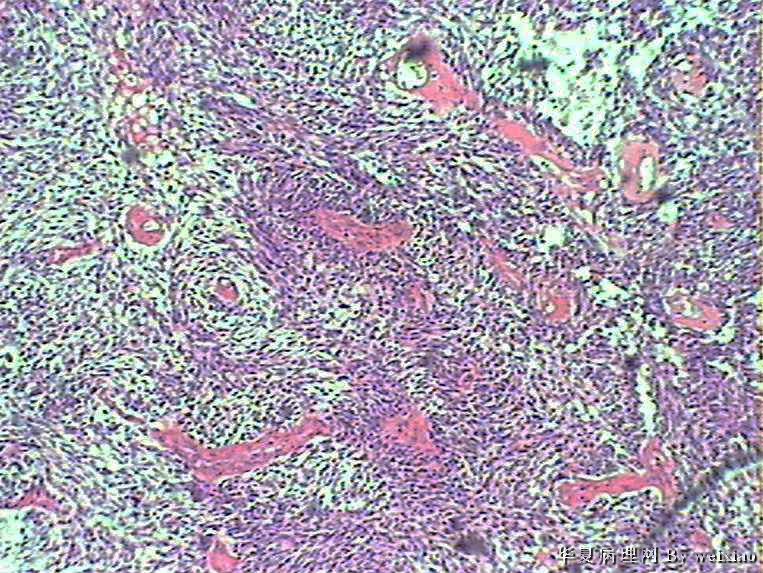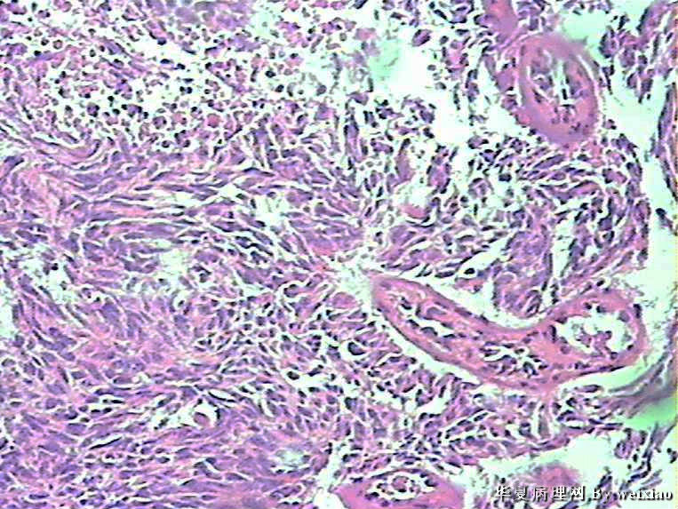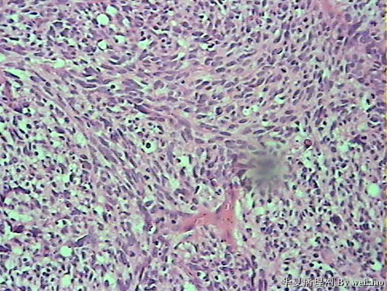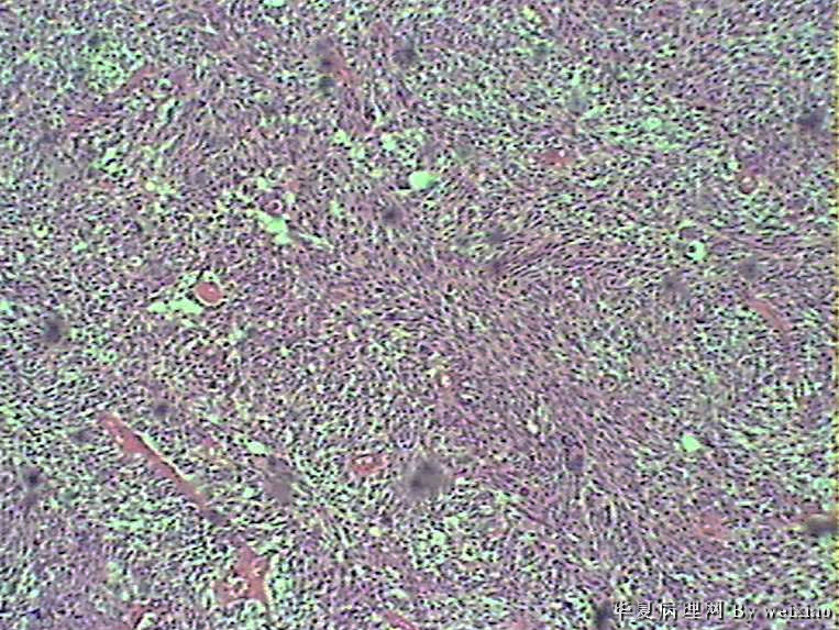 The tumor cells are kind of spindle, need to rule out gliosarcoma, you need to check MRI films, do immunostain for GFAP, and vimentin. The vascular proliferation (VP) supports GBM.