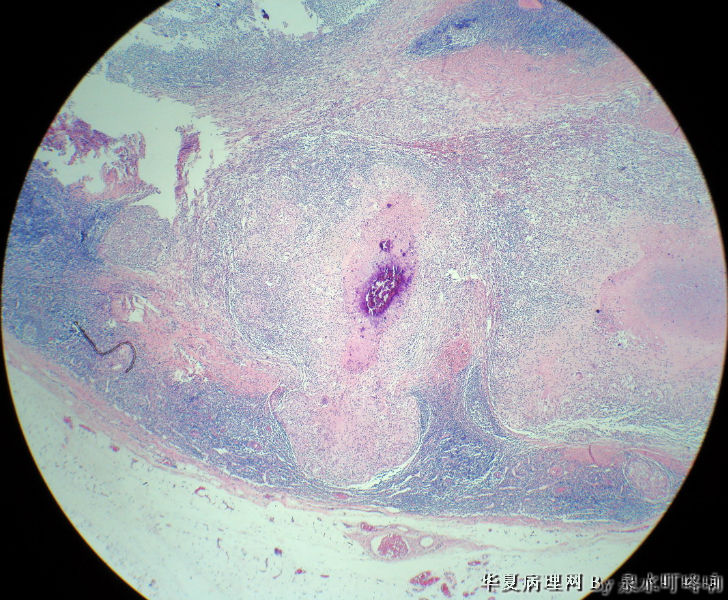 是淋巴结吧,淋巴结肉芽肿性炎伴坏死,建议做抗酸染色。