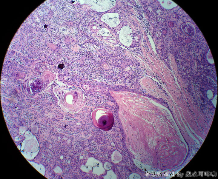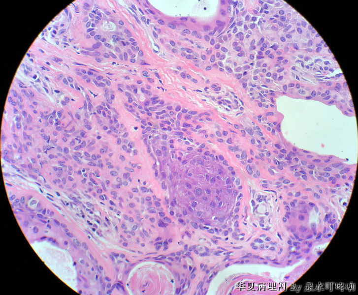 多形性腺瘤,肌上皮、腺上皮增生,鳞化、粘液背景