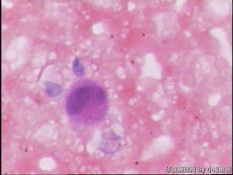 少许间皮细胞,未见异型细胞。