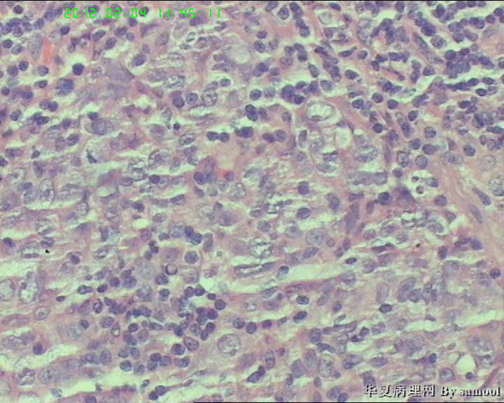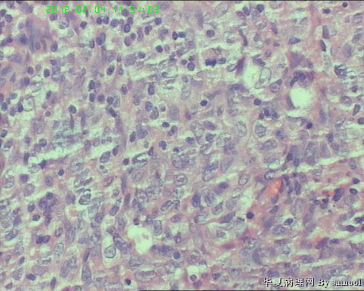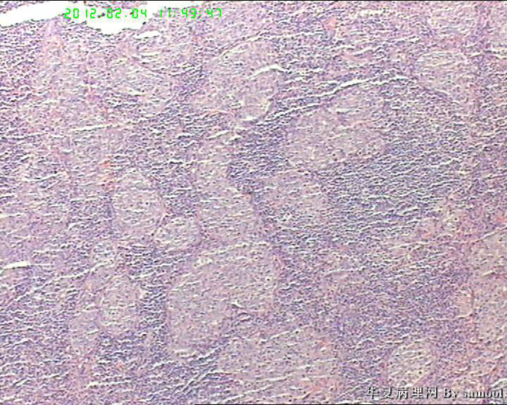 灰红结节一个,大小1.3*1.3*1cm,切面灰红实性质略脆,包膜完整。