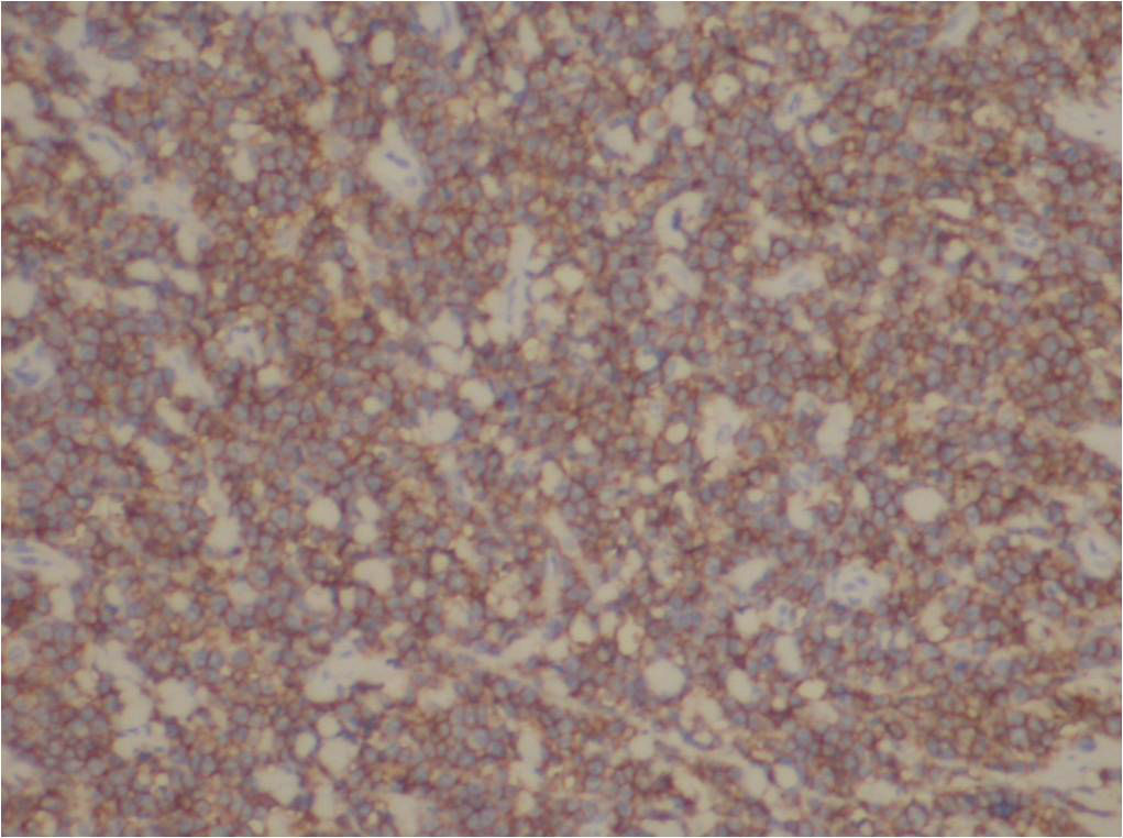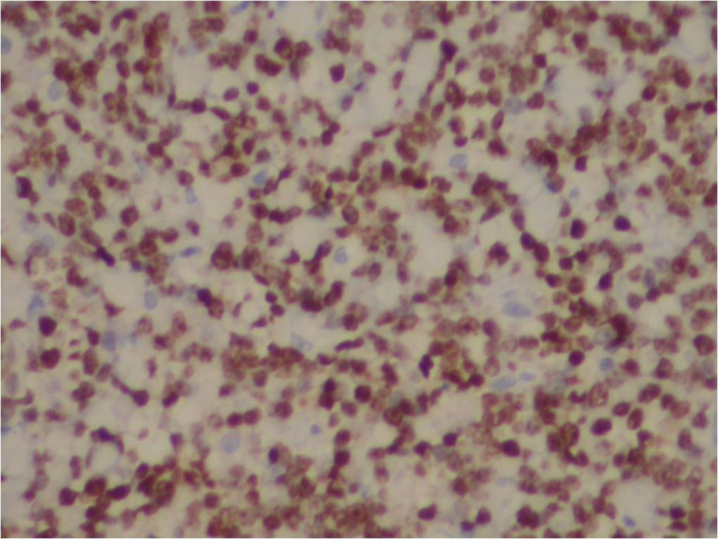 阴性: CD3CD45ROTIA-1CD56CD30ALKCD34TdTMUM1CD138CD5CD7MPOCD15BCL-2CD21CD23CD10