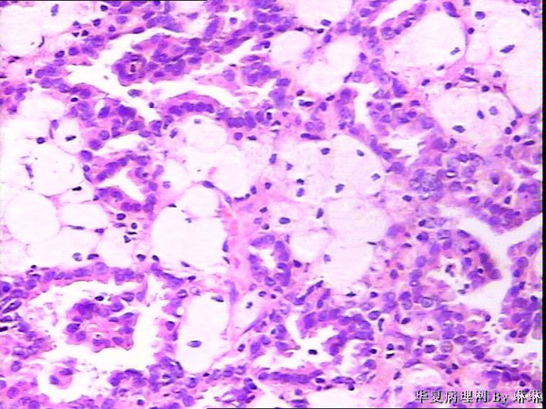 仔细看看有没有乳头状结构,要先考虑乳头状肾细胞癌,1 型。