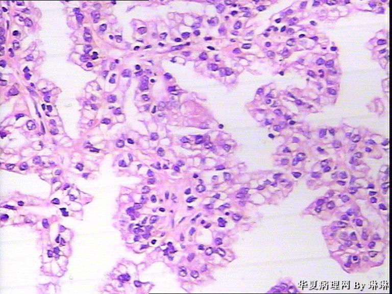 仔细看看有没有乳头状结构,要先考虑乳头状肾细胞癌,1 型。