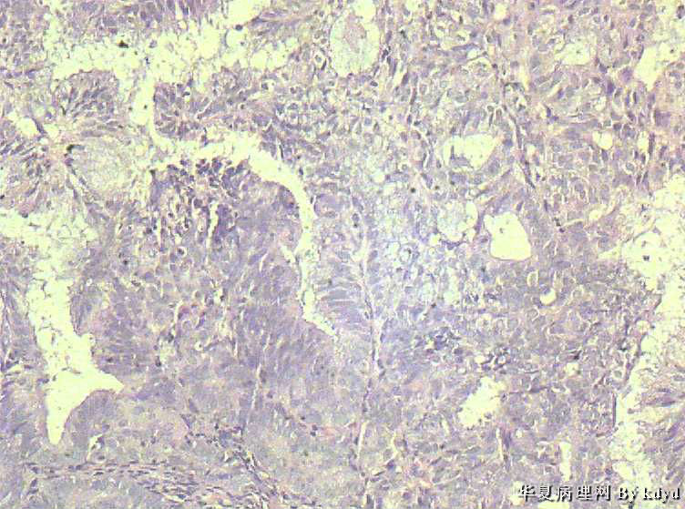 腺癌,内膜和宫颈的很难区分,可结合免疫组化,ER\PR,上色就应该是内膜来源,不上色就是宫颈了