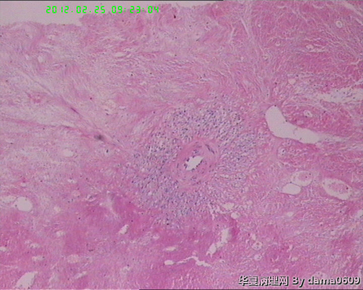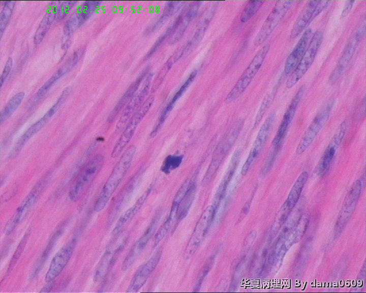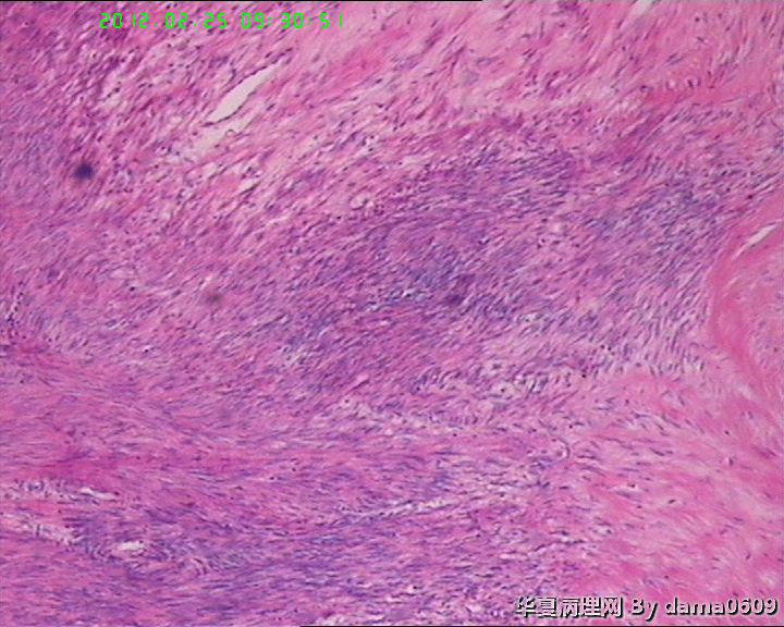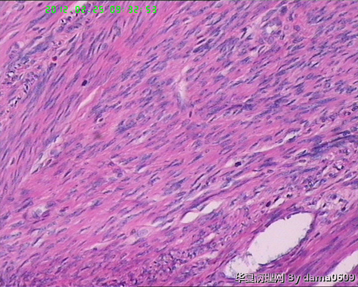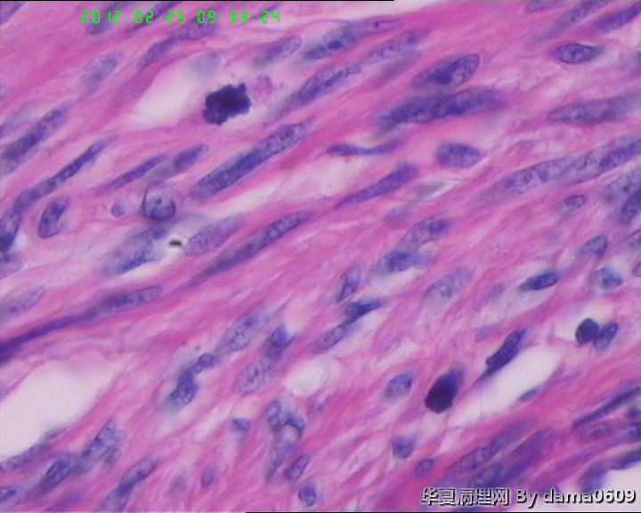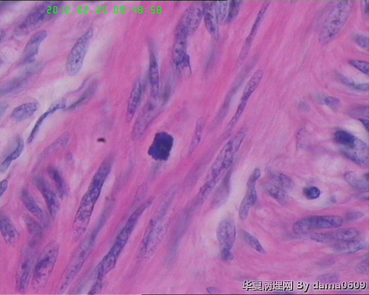 2、此例坏死灶周围平滑肌组织核分裂像很容易见到,时而一个高倍视野竟有四个,如何解释、诊断?再者学生对平滑肌细胞核分裂像也不肯定,请老师指教,应该不是核固缩。