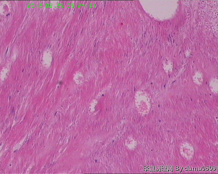 2、此例坏死灶周围平滑肌组织核分裂像很容易见到,时而一个高倍视野竟有四个,如何解释、诊断?再者学生对平滑肌细胞核分裂像也不肯定,请老师指教,应该不是核固缩。