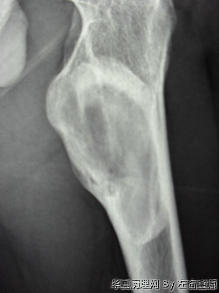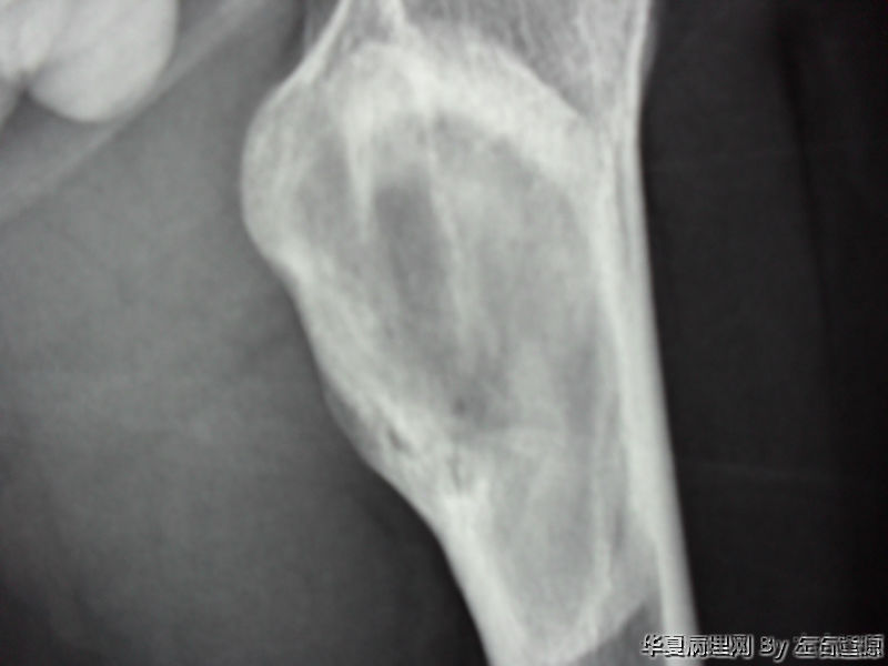 X线可见病变界限较清,应考虑骨化性纤维瘤。