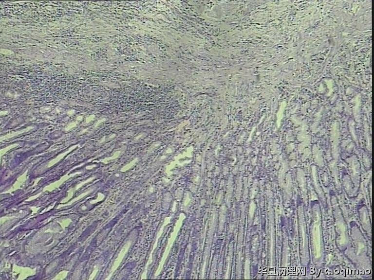 胃溃疡,黏液变,没看到明确的上皮样细胞