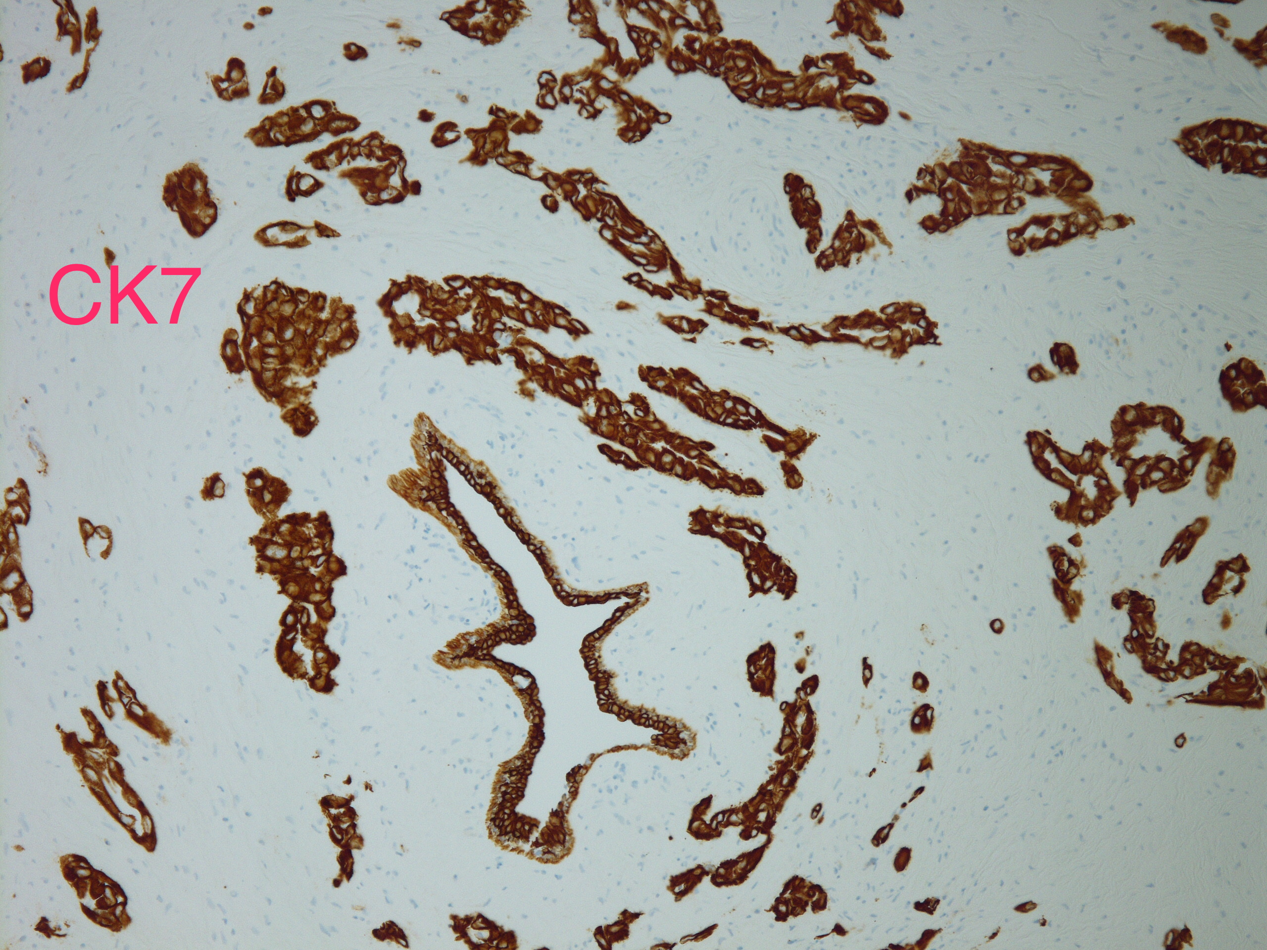 此例最后考虑是来自肺的转移性腺癌