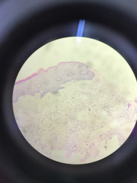 灰红组织一枚,大小0.6✖️0.5✖️0.3cm