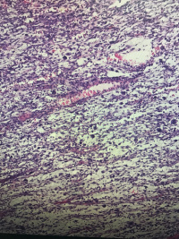 灰白组织一堆,大小10✖️6✖️4.5,切面灰白灰红,黏液感,