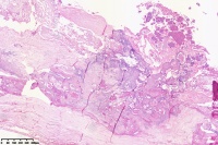 见成熟的骨组织,未见外胚层层组织,结合肉眼所见诊断:囊性成熟性畸胎瘤。
