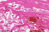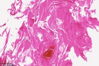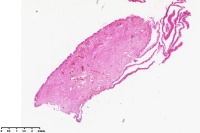 灰褐色结节一个,1.1X1X0.6Cm³,切面灰白、实性、质中。